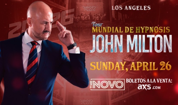 John Milton es un hipnotizador de renombre internacional, considerado como el principal experto en hipnosis en el siglo XXI. Viene de un linaje de distinguidos hipnotizadores, incluido su padre, Taurus do Brasil, que es reconocido en todo el mundo por sus habilidades. No te pierdas la oportunidad de ver su cautivador espectáculo en The Novo de Los Angeles,CA. / John Milton is a world-renowned, internationally acclaimed hypnotist often referred to as the "Maximum Exponent of Hypnosis in the XXI Century". Son of the famed hypnotist Taurus do Brasil, he is known for his live shows, such as "DUERMASE," which combine hypnosis with entertainment. Don't miss the opportunity to catch his captivating show at The Novo in Los Angeles, CA.